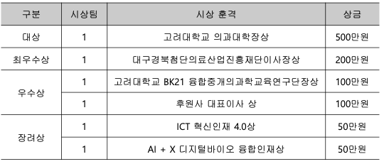 ※ 최종 수상팀은 대회 종료 후 주최측과 협의 하에 공동 연구를 통한 논문 공동 작성이 가능합니다.