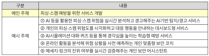 우리의 일상을 위협하는 피싱·스캠 피해를 예방하기 위해 창의적인 발상과 AI 활용 등을 바탕으로 실현 가능한 서비스(MVP)를 개발해주세요.